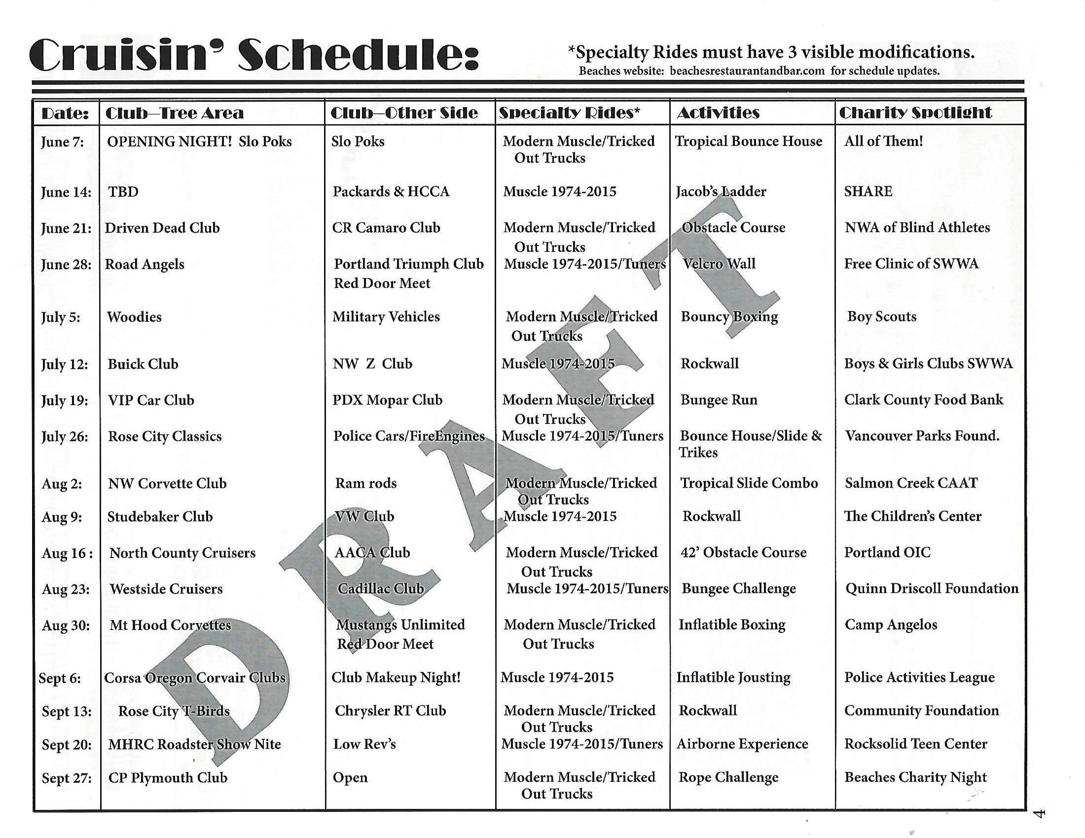 Specialty Nights: See attached calendar